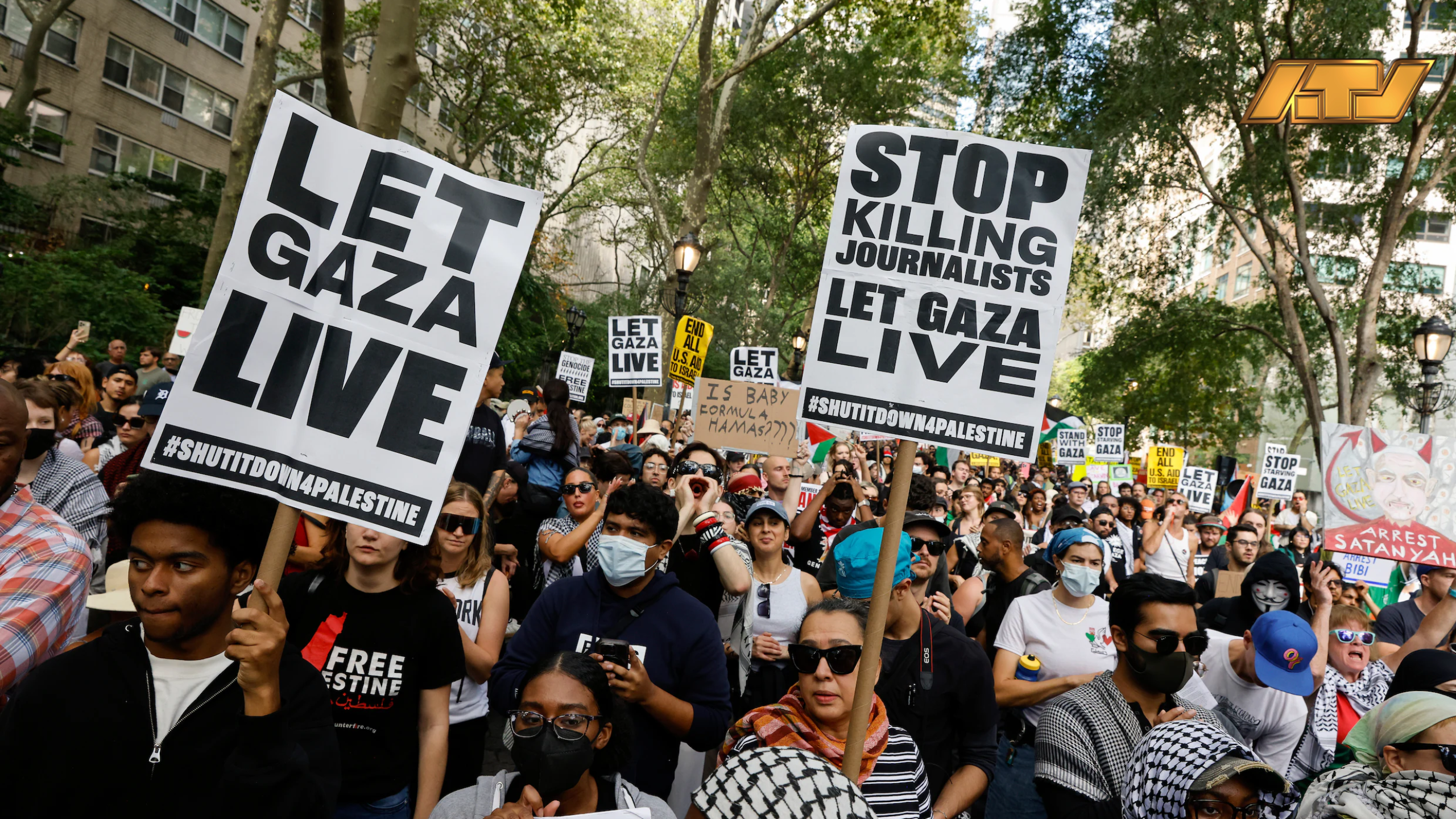 de demonstraties, noemde het een “schande” dat Netanyahu in New York was in plaats van in